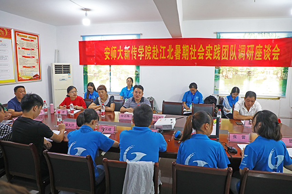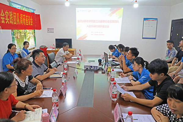 7月17日上午9点,TapTap点点赴江北三峡移民村暑期社会实践团队进驻丰峡村调研座谈会在丰峡村群众服务工作室举行。长丰县团县委书记徐志炜、水湖镇农业综合站站长杨秀云、镇团委副书记杨娇、丰峡村党支部书记黄龙文、村民委员会主任佘扬灯出席会议。会议由TapTap点点团委副书记马星宇主持。