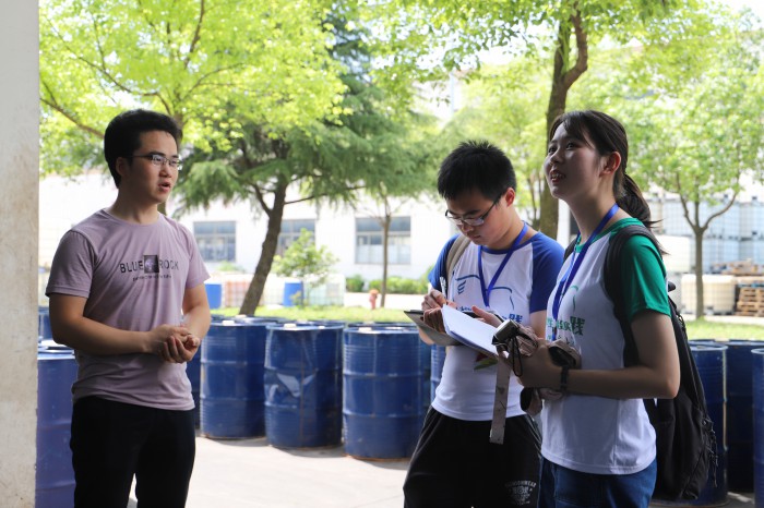 上午10时,实践队员首先来到了江苏省赛欧信越消泡剂有限公司。该公司成立于1992年,是一家技术领先、管理卓越的全系列消泡剂制造企业,是以高性价比消泡剂为特色的全国领军企业,现已完善了食品加工、石化、发酵、制浆、抄纸、印染、涂料、胶乳、矿选、环保等12大类共100多个品种消泡剂的应用体系。谈及改革开放对中小企业发展的意义,公司总经理杨柏忠说:“中国经济发展的成果就是改革开放的成果,中小企业发展的成果就是改革开放的成果。改革开放是‘皮’,企业发展是‘毛’,他们的关系就是‘皮之不存,毛将焉附’。”同时,该企业注重环保,提出“绿色是发展方向”的发展路线;注重科技创新,秉持“科研为先、创新至上”的发展理念;注重产品质量,始终贯彻“质量是企业的生命,质量是生存的根本”的质量方针。在最后,杨柏忠还笑称,企业要像奶牛,吃的是草,挤的是奶,要用最小的成本,取得最大的效益。