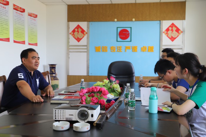 下午3时,实践队员们不顾午后的炎热,又分别前往江苏杰创科集团和金湖县支点石油科技有限责任公司进行调研考察。来到江苏杰创科技集团,首先映入眼帘的就是环境优美的厂区、宽敞整齐的厂房,让人顿时眼前一亮。该集团成立于2010年,坐落于有荷文化之乡美誉的中国江苏省金湖县工业园区,是江苏省仪表线缆特色重点培育基地。同时,该集团重视人才引进,是江苏省“返乡创业”的典型。如今,集团总资产近2亿元人民币,占地面积10万平方米,员工总数500多名。集团公司以仪器仪表、电线电缆、电气设备、新型能源等为主营业务,凭借良好的口碑,产品已被石油、电力、化工、制药、煤矿、冶金、炼油等诸多行业和企业所信赖。“国家为企业的发展提供了越来越完美的政策扶持,企业之前想都不敢想的一些的做法在国家的帮助下逐渐实现”,总经理陈红群说道。