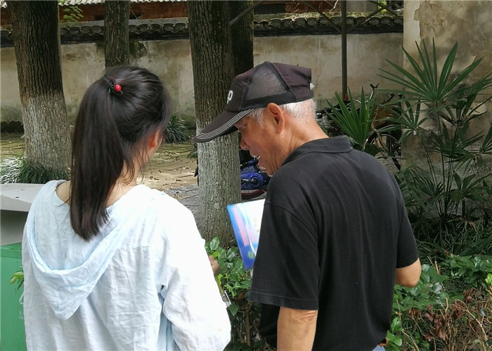 在中午简单修整后下午两点半,队员们到达莲湖公园,通过访问的形式,采访公园中的爷爷奶奶对黄梅戏的感情、看法。有一位80多岁的老爷爷感慨地说黄梅戏是中华传统文化符号,是一种带有小时候记忆的戏剧,它应该是具有潜力的戏剧,我们每个人都应该保护和传承这种文化。