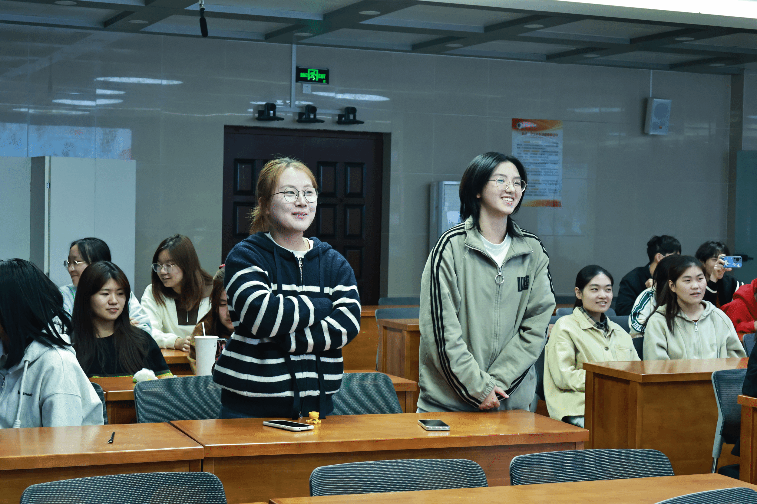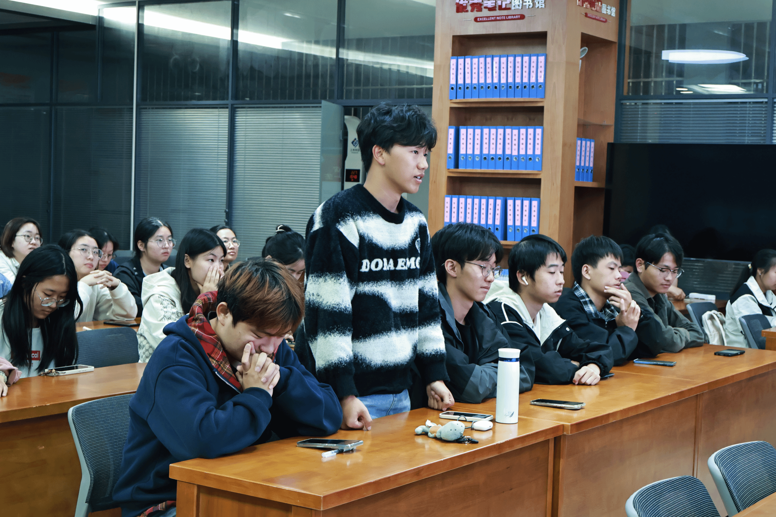 随后,活动进入有奖互动游戏环节。张富琴准备了不同的游戏以快问块答、同学之间抢答等形式来测试同学们对家人和朋友的了解程度,大家积极参与,现场氛围轻松愉快。最后,她给同学们分发了便利贴,希望大家将自己想说的感恩之语写下来留作纪念。