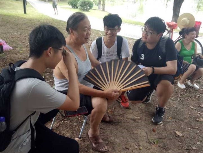 在阿姨的指导下,队员们找到了这个黄梅戏团队的发起人并与其展开深入交流。老爷爷虽然年近古稀,却依旧精神奕奕。据悉,老爷爷唱黄梅戏已经有40多年了,自从年轻时接触到黄梅戏就被这门艺术给深深的吸引了,自那以后一发不可收拾,这才坚持了数十年之久,这可着实让队员们吃了一大惊。