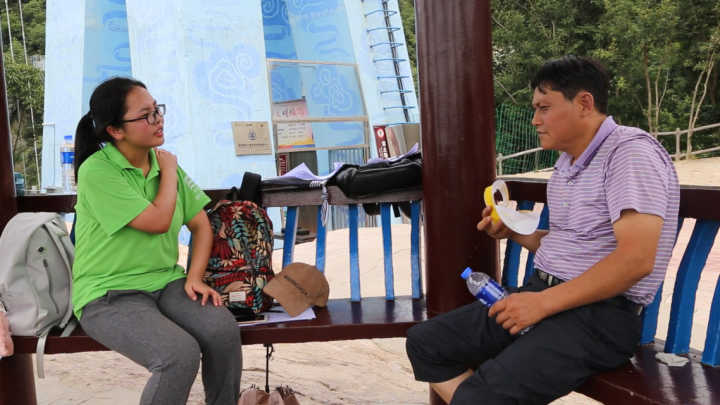 在开始正式采访之前,实践队员们拟写了采访提纲,内容大致包括出发地、选择马仁奇峰作为目的地的原因、交通选择、旅游行程和计划等方面。为不干扰游客的正常观光游览,队员们选择了各主要景点的休息区作为采访阵地。