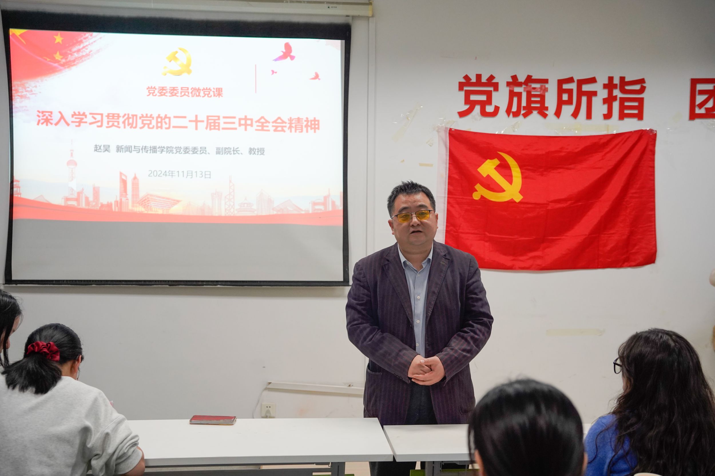 赵昊教授的微党课带领党员们全面了解和学习了二十届三中全会关于教育、科技、人才、创新领域的改革内容。全会提出,教育、科技、人才是中国式现代化的基础性、战略性支撑。赵昊给党员们解析了《中共中央关于进一步全面深化改革、推进中国式现代化的决定》中关于深化教育科技人才体制机制一体改革重要部署的三项主要内容:一是深化教育综合改革;二是深化科技体制改革;三是深化人才发展体制机制改革。赵昊指出了教育改革的重要性,深刻解析了科教兴国战略、人才强国战略的内涵,表示教育改革就发生在我们身边,要求党员们立德树人,以身作则,注重德智体美劳全面发展,为中国教育事业贡献自身的力量。