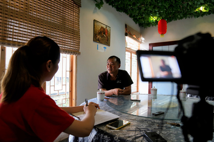 调研组在党员代表朱向阳的陪同下,采访了当地农家乐代表朱钢峰。在采访中,他讲述了他在经营农家乐过程中的苦与乐。调研组也在他的讲述中感知到了他浓厚的乡愁情怀。调研组还顺利采访到了祖源村党支部书记项祥年,项书记在治村、理村、兴村丰富的经验,使队员们对乡村振兴的足迹有了更深入了解。