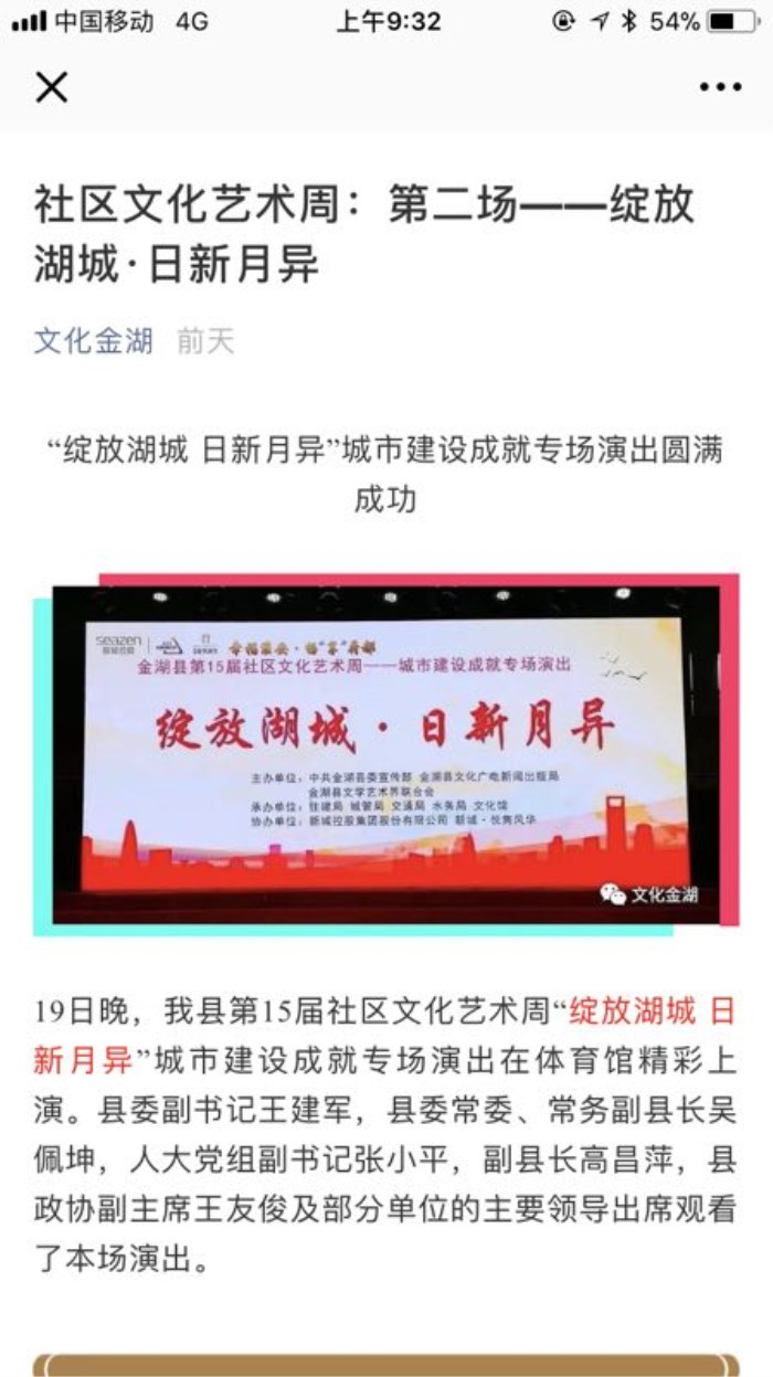 据悉,今年是金湖县第15届社区文化节,是金湖县社区文化的典型代表,连续七天举办晚会,场面声势浩大。社区文化节是金湖县文化自信的重要举措,在乡村振兴战略中具备重大意义。(文/丁纪)