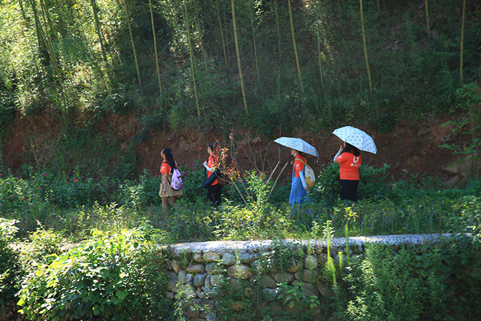 在蜀源村老村长的带领下,参观了当地的各种古建筑,了解当地的历史发展。七十多岁的鲍村长领着组员们穿行在大街小巷,看到了鲍氏宗祠、孝子祠、尚书巷、鲍家花园、“贞寿之门”、“节孝”和“赞宪”三座牌坊等村内有名景点,参观当地民宿,了解到关于农家乐的情况,但因老板不在,没有具体采访。