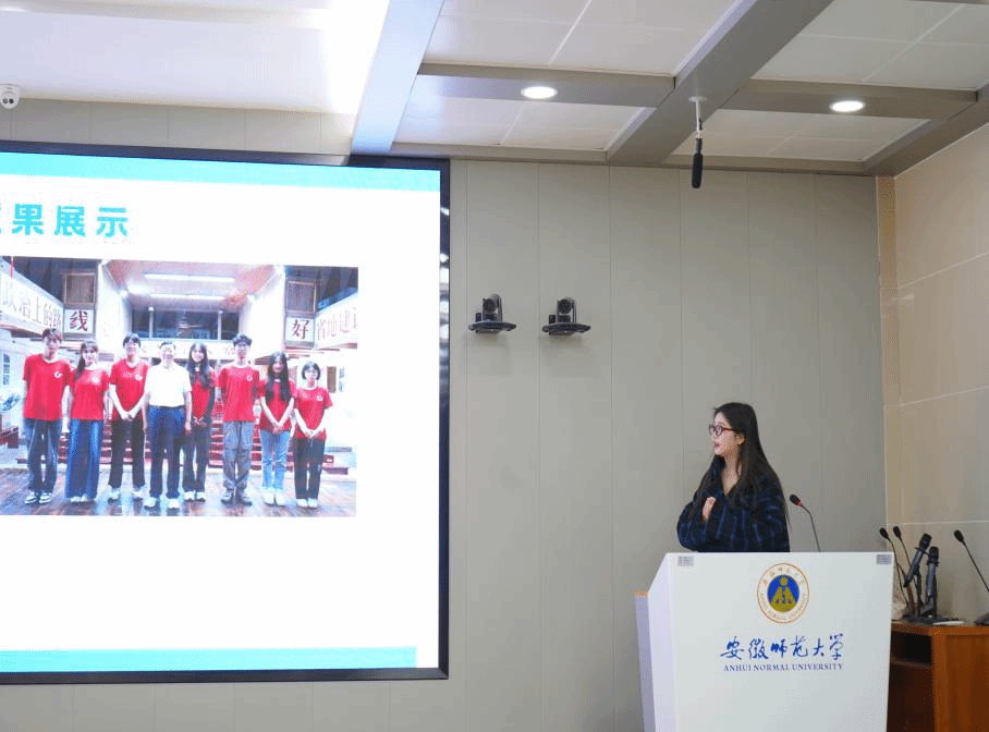 紧接着是优秀作品的展示环节。张舒琪、赵思琦、徐冰月和吴睿瑞依次展示了他们在各个乡镇实践活动中拍摄的视频作品。这些作品记录了实践的点点滴滴,每一帧画面都是一段故事,每一个细节都反映了同学们的用心和努力。