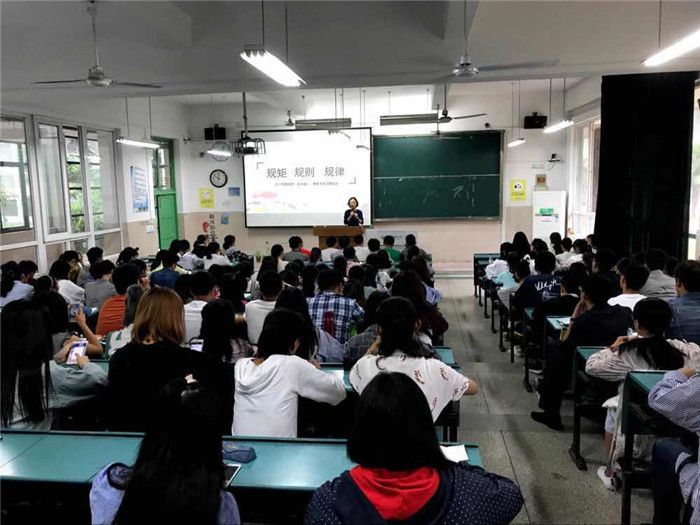 会议过程中,张虹老师首先具体详细的解释了“规矩”的主要内容。详细介绍了五种校级处分类型以及院级通报批评。辅导员结合大量实际案例,并公示了以往的违纪处分通报,着重强调了有关考试作弊和替考、代考等违纪行为。用学长学姐的反面教材语重心长的提醒同学们守牢纪律“底线”。