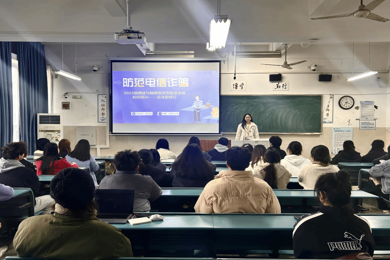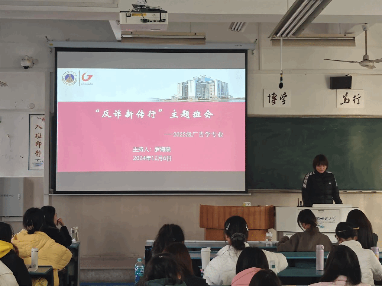 为了进一步增强老员工群体的安全意识,提升员工识别和防范诈骗的能力,2024年12月6日,2022级新闻学、广告学、网络与新媒体、播音与主持艺术专业分别开展了反诈宣传系列主题班会。本次班会为同学们提供了一个学习和交流的平台,让他们能够深入了解诈骗的各种形式和手段,掌握有效的防范措施,共同编织起一张严密的反诈骗安全防护网。