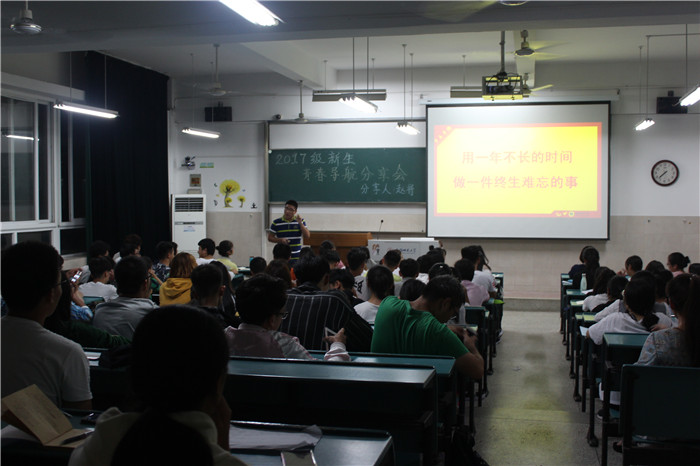 在分享会的最后,大家就自己感兴趣的问题如“与员工沟通的方法与技巧”、“支教过程中最难忘的一次经历”等与赵将老师进行了交流,赵老师结合自己的经历和实际情况解答了同学们的疑惑,同时用林清玄的话激励同学们“名须没世称方好,书到今生读已迟”。相信经过此次青春导航分享会的洗礼,大家也会积极服务社会,献出自己的一份力量。(图/文 2017级新闻学团支部)