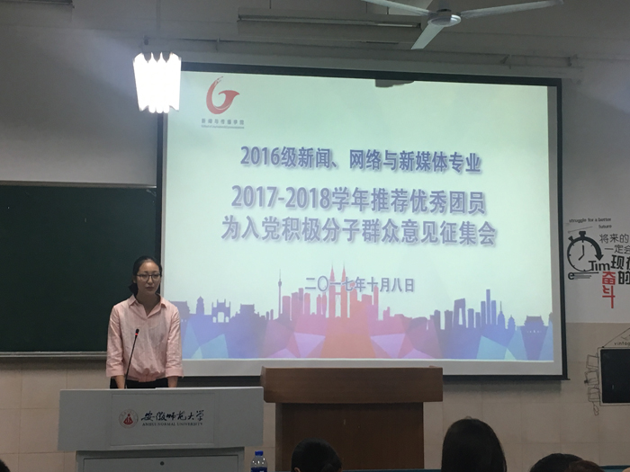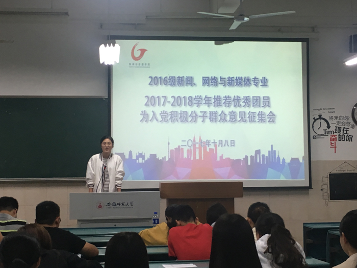 10月8日和9日,2016级新闻网新专业召开推荐优秀团员为入党积极分子推优会,近30名同学参与竞选,会议由辅导员张雁主持,班级同学皆出席会议并进行民主投票。