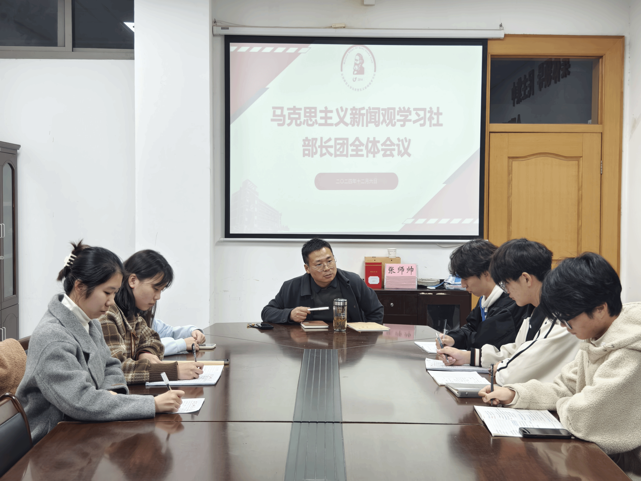 12月6日晚,马克思主义新闻观学习社在院楼508召开本学期第一次部长团全体会议。会上,社团指导老师马星宇就马观社现状与未来发展进行了深入分析,并对现任部长提出要求与期望。