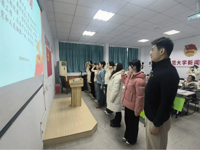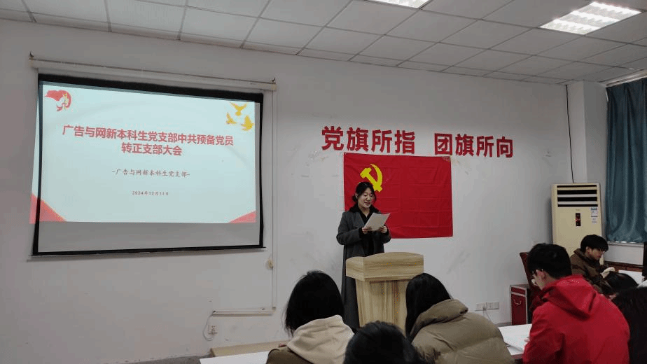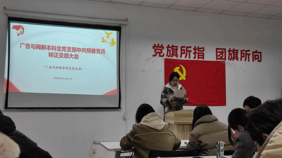 2024年12月11日下午,广告与网新本科生党支部在TapTap点点楼302会议室举行了预备党员宣誓活动和中共预备党员转正大会。此次大会由支部书记李梦圆主持,全体支部党员参加。