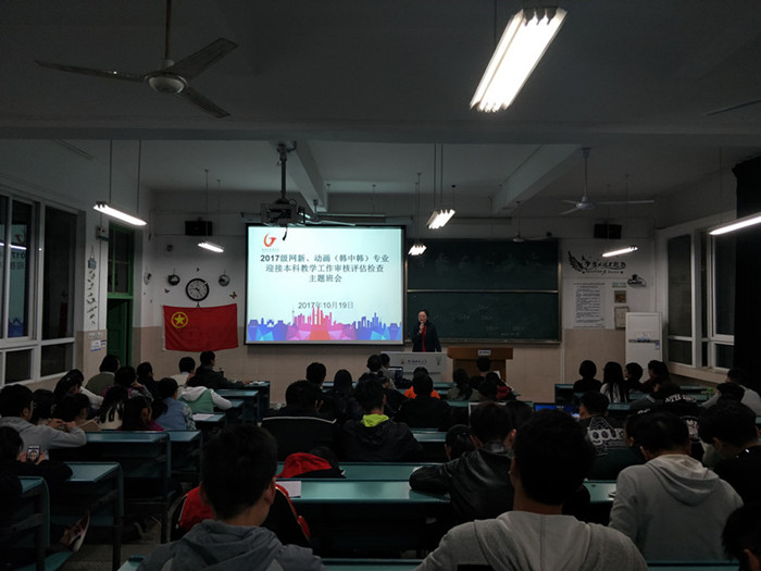 为迎接本科教学工作审核评估检查,提高本科员工在校期间的个人及集体文明意识,促进良好学风校风的形成,10月19晚上21:00,17网新、动画(含中韩)专业于2050302教室召开本科教学工作审核评估检查主题班会。班会由辅导员张雁主持,全体同学与会。