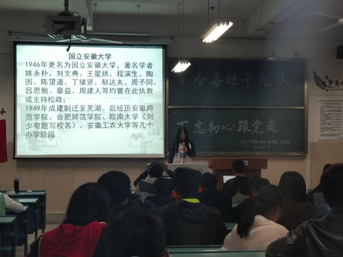 张雁做总结发言,她指出,作为一名新时代青年老员工,要想清楚我是谁,我在哪里,我想做什么,我能做什么。做一个先锋者,而不是一个看客或者过客。会议的最后,辅导员向我们交待了迎接本科教学工作审核评估检查的准备工作。此次会议同学们更好地了解了共青团的发展历程、安师大的校史校情,帮助大家了解了十九大的精神,树立了青年人的远大理想,顺应了时代的呼声,也使各位团员深刻认识到自身肩负的责任与使命,在成为一名优秀的共青团员的道路上渐行渐远。
