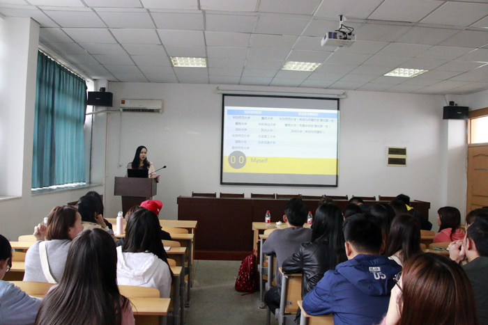 2014级新闻学的陈晓煜首先从为什么要读研究生入手,表明读研是一次艰难的选择。面对竞争越来越激烈,报考越来越困难的局面,要做出合适的选择,切忌好高骛远,摇摆不定。接着陈晓煜详细地介绍了该如何准备考研,分享了很多干货内容。从如何选择公司到面试的准备都应有尽有,并结合自己的学习经验,鼓励有考研意向的同学明确目标和方向,保持一颗强大的心,做好100%的准备去争取1%的机会。她特别强调,考研是一场旷日持久的战争,不要等待,此刻就是最好的时刻。