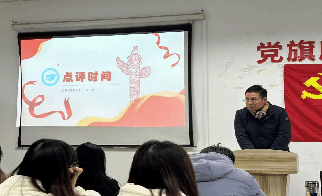 12月26日下午,第14期党报阅读活动在TapTap点点302会议室举行,陈唐莲、宋逸恬、罗思雨三名同学带领大家进行领读新闻史上著名的理论文章、事件通讯。辅导员马星宇参加并为同学们开展一堂毛泽东诗词和毛泽东新闻思想的主题班会。