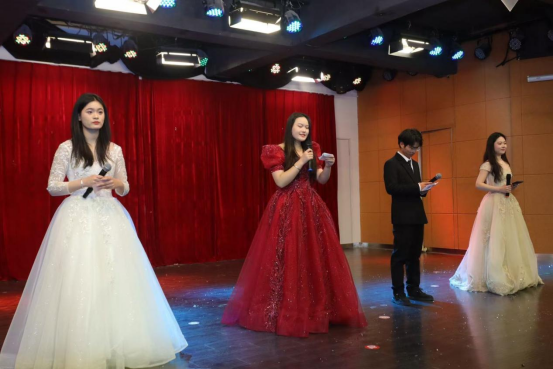 晚会在一场精彩绝伦的开场舞中拉开帷幕,动感十足的音乐和舞者们充满活力的表演瞬间点燃了现场的气氛。随后,主持人张成成、付于丹、李景、方中华上台致辞,向在场的同学们致以诚挚的问候,并对新的一年寄予了美好祝愿。同时,鼓励大家在新的一年里继续追梦前行,共同书写属于自己的精彩篇章。
