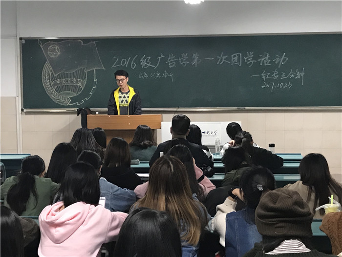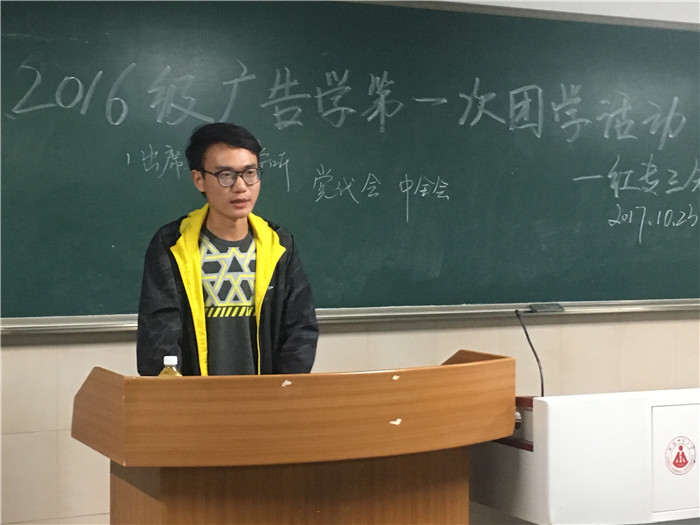 在党的十九大如火如荼地进行之时,安师大2016级广告学团支部紧跟党的步伐,于10月23日晚七点邀请了2014级新闻学优秀员工代表何修豪进班,就党的知识开展了一次颇具教育意义的团日活动。