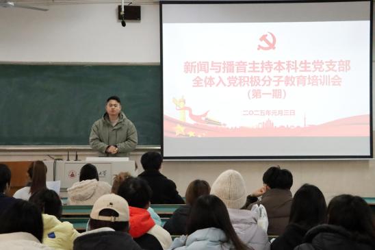 为加强入党积极分子的党性修养,提升其政治理论水平,新闻与播音主持本科生党支部于2025年1月3日举办了第一期全体入党积极分子教育培训会,共110多名支部入党积极分子参与此次培训,在思想教育与实践锻炼中开启了向党组织靠拢的新征程。