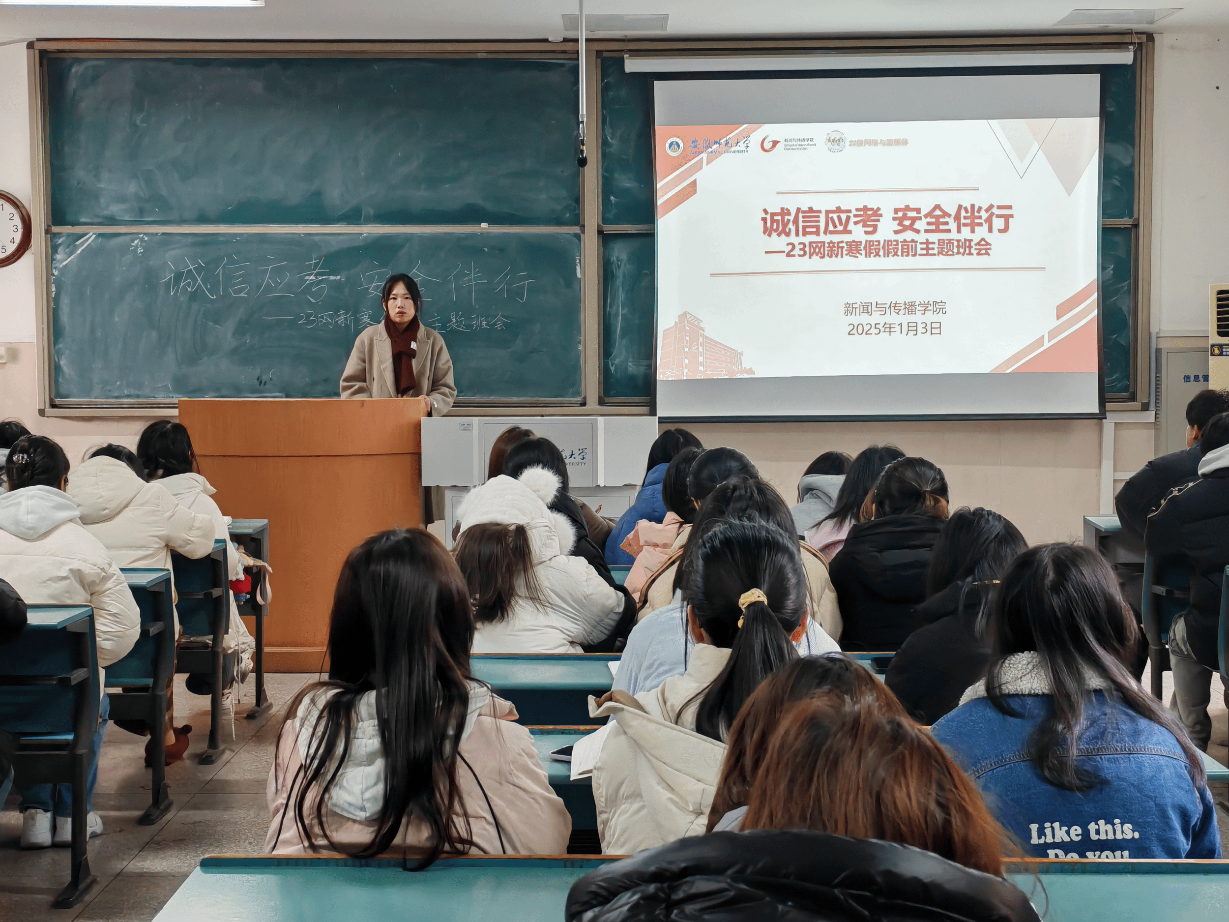 为深入贯彻落实公司关于诚信考试工作的相关要求,营造公平公正的考试环境,同时推进假期安全离校工作,提升员工假期安全意识,1月2日-3日,2022级航空服务艺术与管理专业、2023级网络与新媒体专业召开了诚信考试教育暨寒假离校安全主题班会,会议由辅导员汪笑笑主持,全体同学参加。
