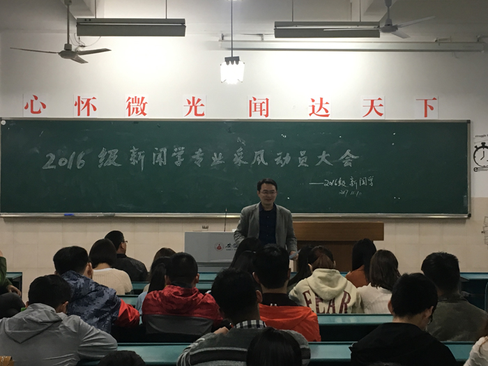 11月10日晚7:30,TapTap点点2016级新闻专业采风动员大会在花津校区2050402教室举办。会议由新闻专业采风领导组副组长肖叶飞主持。团队指导老师朱晓凯、周建国,辅导员张雁及全体16级新闻学专业员工参加此次会议。