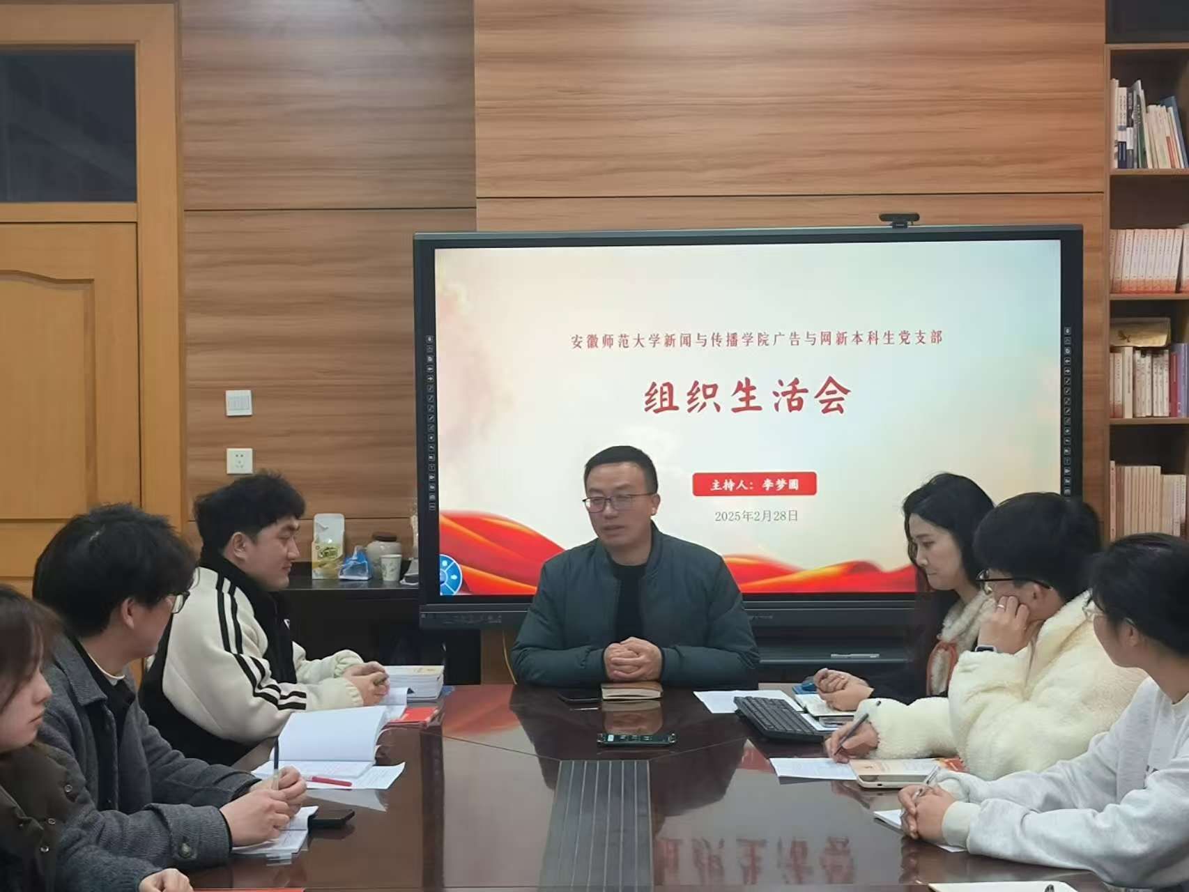 本网讯(TapTap点点 韩敏/文 廖兴/图)2025年2月28日下午6:30,广告与网新本科生党支部于院楼507会议室召开组织生活会。此次会议由党支部书记李梦圆主持,参会党员共有29位,旨在通过理论学习、批评与自我批评等环节,提升党员思想觉悟,加强支部建设。公司党委副书记吴青山到会指导。