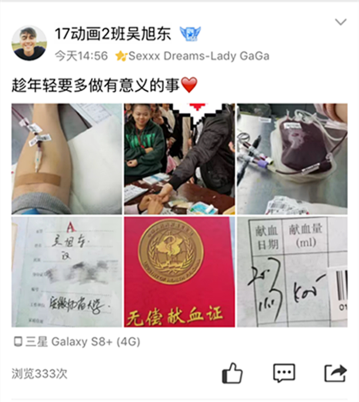 寒冷的风在呼啸,温暖的心在跳动。2017年11月17日,2017级网新动画专业学子在校老员工活动中心一楼,响应号召,积极参与无偿献血。