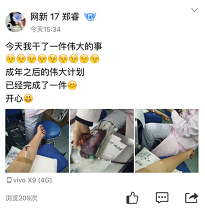 “热血重铸生命,再现人间真情”,无偿献血是每个公民应尽的义务和责任,同时也是一种荣耀,是关爱他人、回报社会的爱心举动,更是中华民族助人为乐、救死扶伤、无私奉献传统美德的具体表现。让我们致敬每一位无偿献热血、传递正能量的同学!