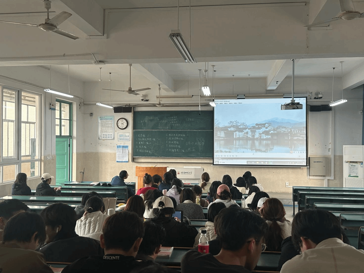紧接着,会议进入了优秀作品展示环节。郭子银和吴言两位同学的视频作品以其独特的视角、精湛的剪辑展现了徽州记忆和家乡传统风貌。同时展示了摄影艺术的魅力,也为同学们提供了宝贵的创作经验和灵感。
