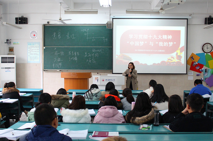 2017级新闻学专业的田旭川同学说:“十九大的关键词是‘新时代’。我们国家的主要矛盾也发生了改变,变成了人民美好生活的愿望与发展的不平衡、不充分之间的矛盾。”那进入新时代,同学们对未来五年自己的学习生活有信心吗?觉得未来五年,自己的生活会变得更好的请举手。一个小小的民意调查,让同学们深切感受到了国家梦想和自身梦想的的伟大力量。