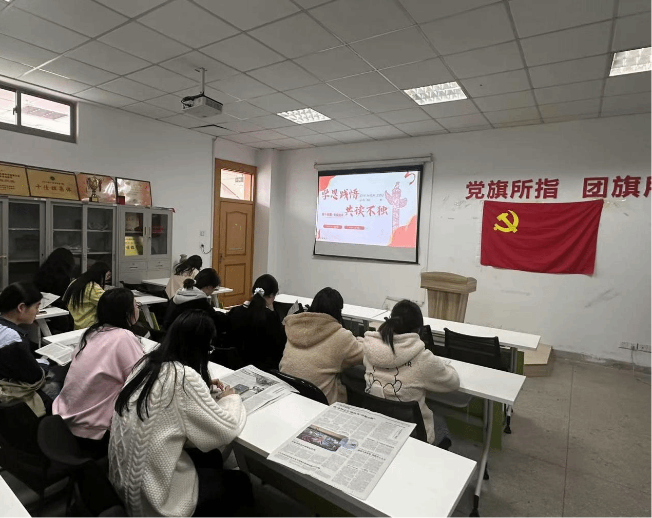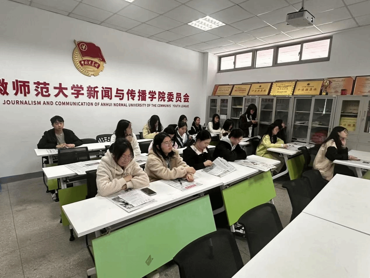 本网讯(文/朱奕晖 图/张嘉美)深读党报锤炼“四力”,专业视角讲好中国故事。3月1日,23级新闻学专业第十四期“学思践悟、共读不独”党报研读会在公司楼302室举行。活动由唐冠男同学主持,辅导员马星宇老师全程指导,通过沉浸式研读、案例解析与师生思辨,深化了员工对新闻写作核心价值的理解,并为两会主题学习奠定基础。