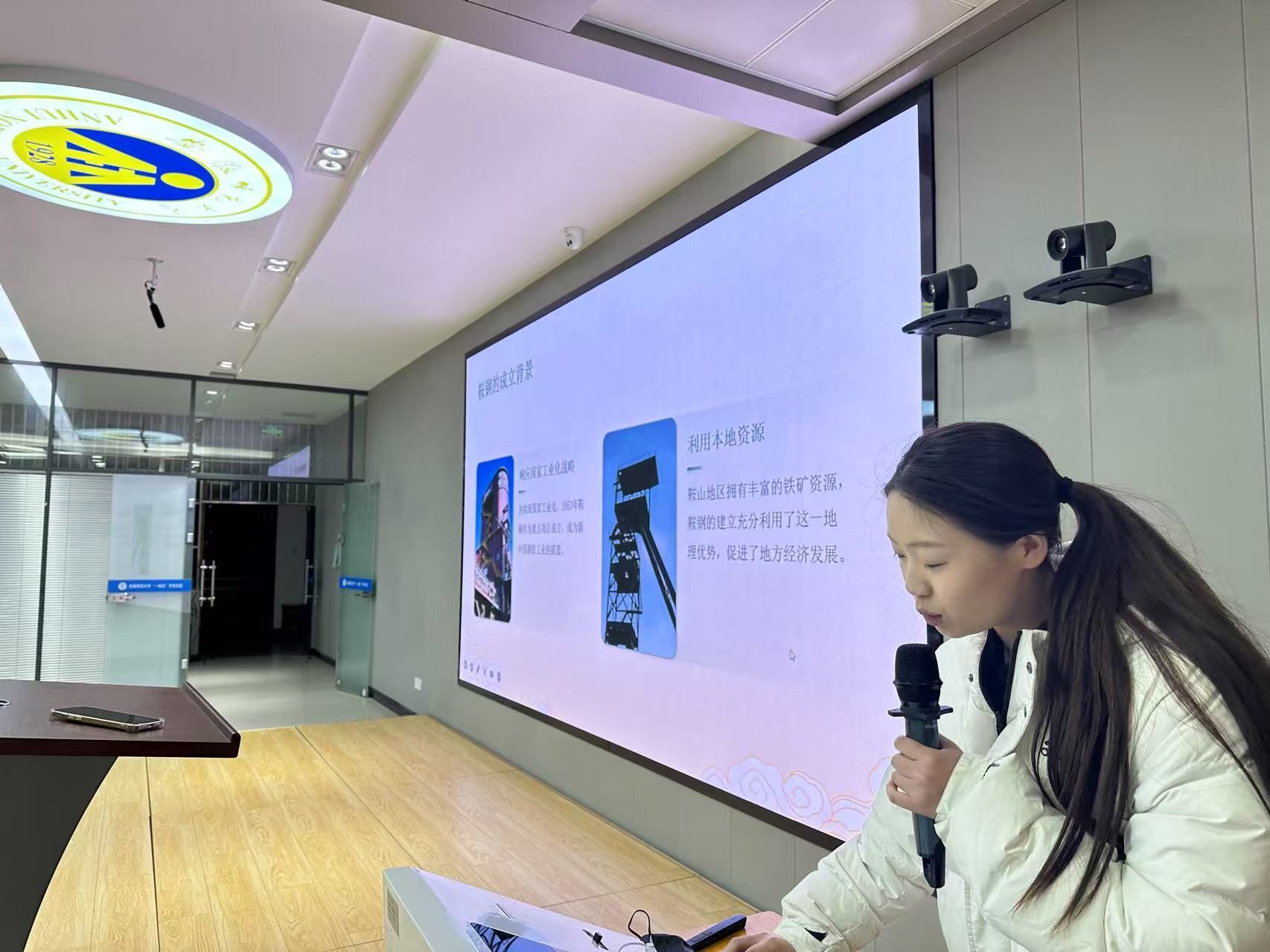 陈家慧同学以“鸠兹廉韵”廉政文化宣传视频为例,介绍了在包公祠的拍摄经历。她通过拍摄古建筑细节、解读碑文史料,将包公“清心直道”的精神转化为青年视角的视听表达。张华文淇同学则以鞍山钢铁发展史为题材,通过搜集厂志档案,讲述东北重工业的发展史,展现老工业基地的奋斗历程。