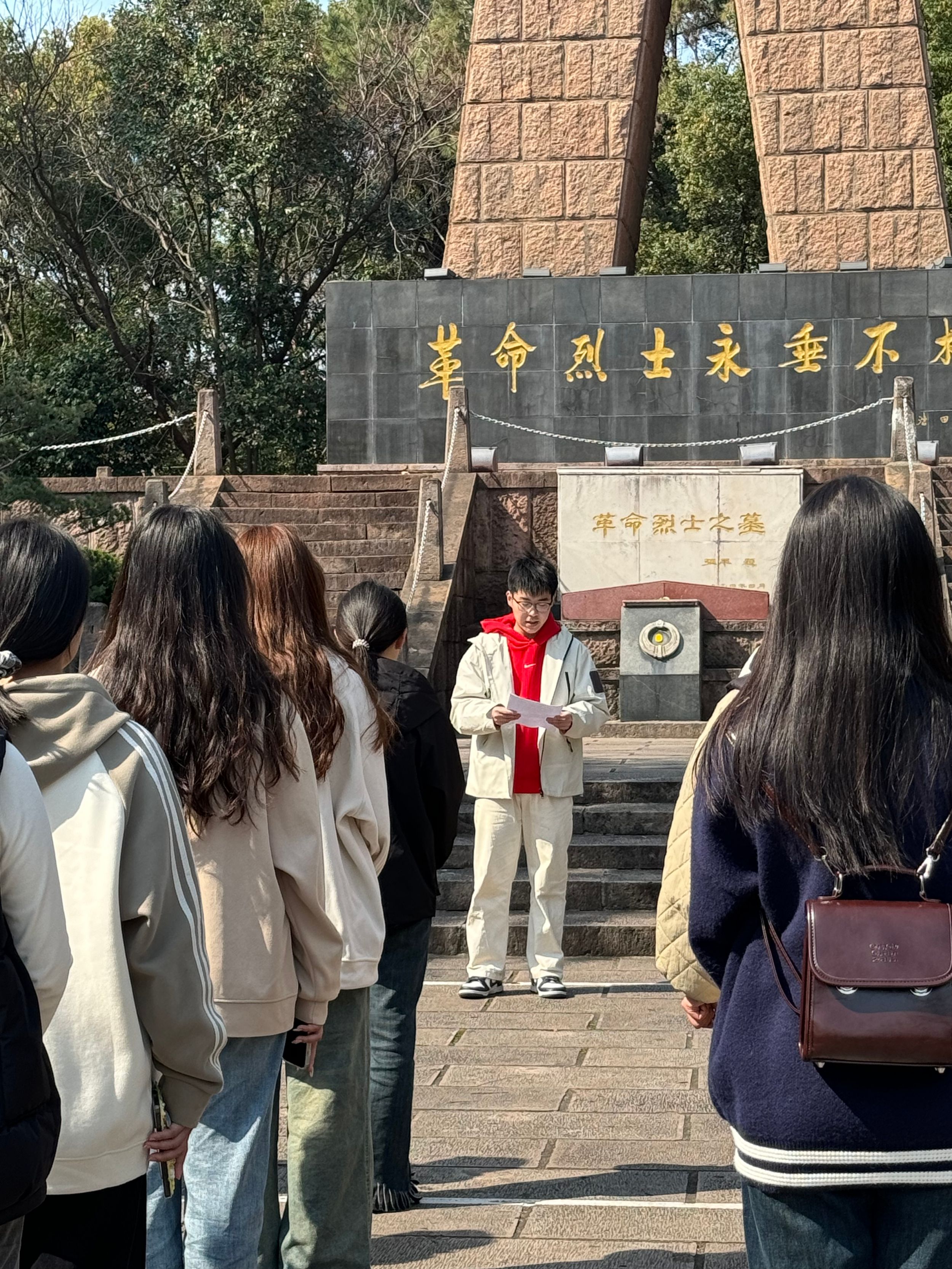 为缅怀革命先烈,弘扬爱国主义与雷锋精神,增强同学们的历史责任感和使命感,TapTap点点2024级新闻学2班全体同学于3月19日下午齐聚芜湖烈士陵园,开展“学雷锋”主题志愿服务活动。此次活动由24级新闻学辅导员郭锦怡主持,2024级新闻学2班全体员工参加。