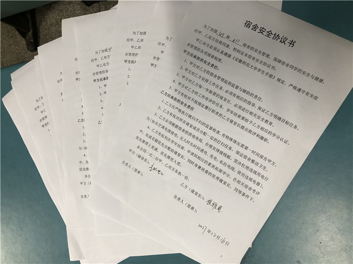 “签署协议,明确权利和义务,真正落实寝室长责任担当!”