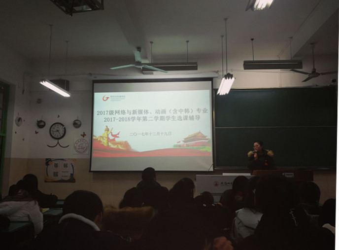 12月19日下午,2017级网新、动画(含中韩)专业召开了2017—2018学年第二学期员工选课辅导主题班会。本次班会由辅导员张雁主持,网新和动画(含中韩)专业员工参加。