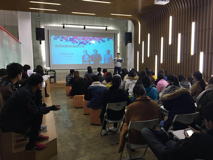 公司师生在工场的交流大厅聆听了一场以“创业及职业选择分享”为主题的学习交流座谈会,主讲人是胡莱游戏负责人之一刘冠麟。刘冠麟以“梦想”为关键词,与在座同学畅谈“创业梦”,并与大家分享自己丰富的创业经历以及创业道路上的人生感悟。新传学子结合讲座内容与个人经历,积极提问,发表个人看法,获得了刘冠麟的肯定。