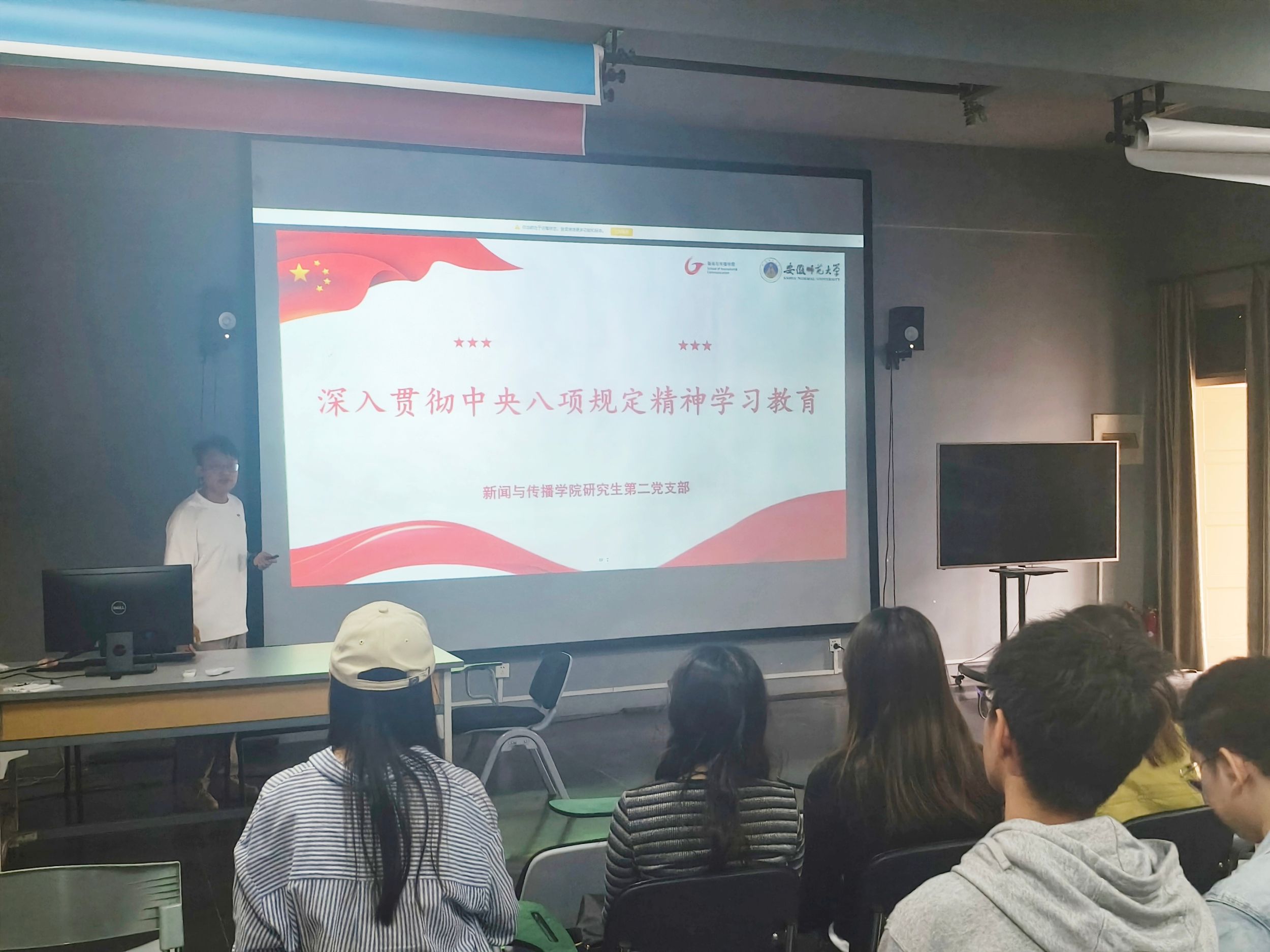 随后,全体支部成员观看了警示教育片。一个个触目惊心的案例、一句句声泪俱下的忏悔,给在场的每一位党员带来了强烈的视觉冲击和心灵震撼。同学们借此了解到了违反中央八项规定精神等党规党纪最终害人害己的惨痛事实,也认识到了腐败行为带来的严重危害。观看结束后,张伟老师强调,这次学习教育覆盖全体党员干部,其目的在于教育引导党员、干部锲而不舍贯彻中央八项规定精神,进而密切党群干部关系,巩固党的执政基础,为推进中国式现代化贡献智慧和力量。
