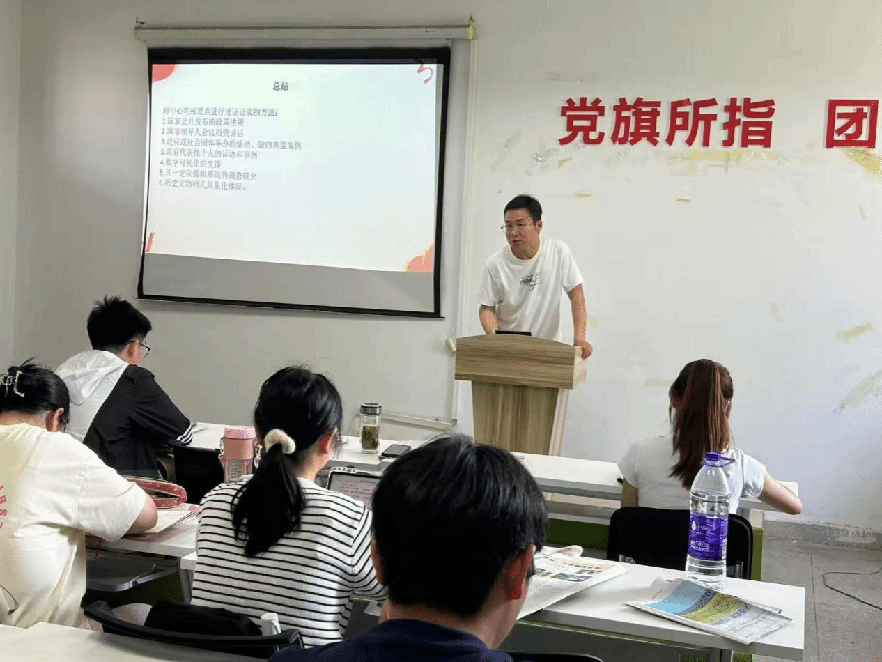 王平乐同学分享节日专题报道《书香里的中国,欣欣向荣》。先分析主副结合复合标题的精妙,又从段落出发解读写作技巧与方法,最后介绍运用政策法规、领导人讲话等论证中心句的方法。