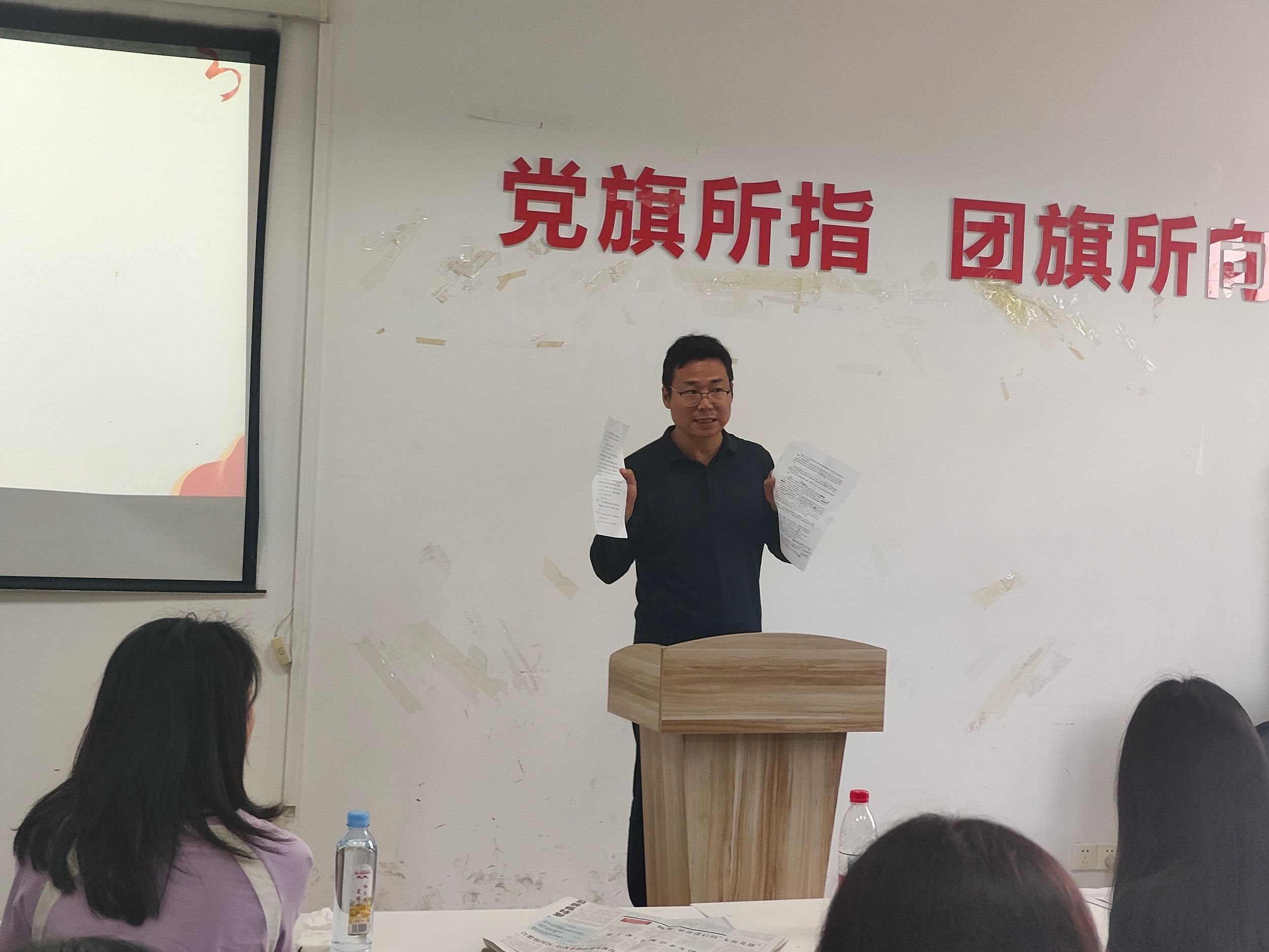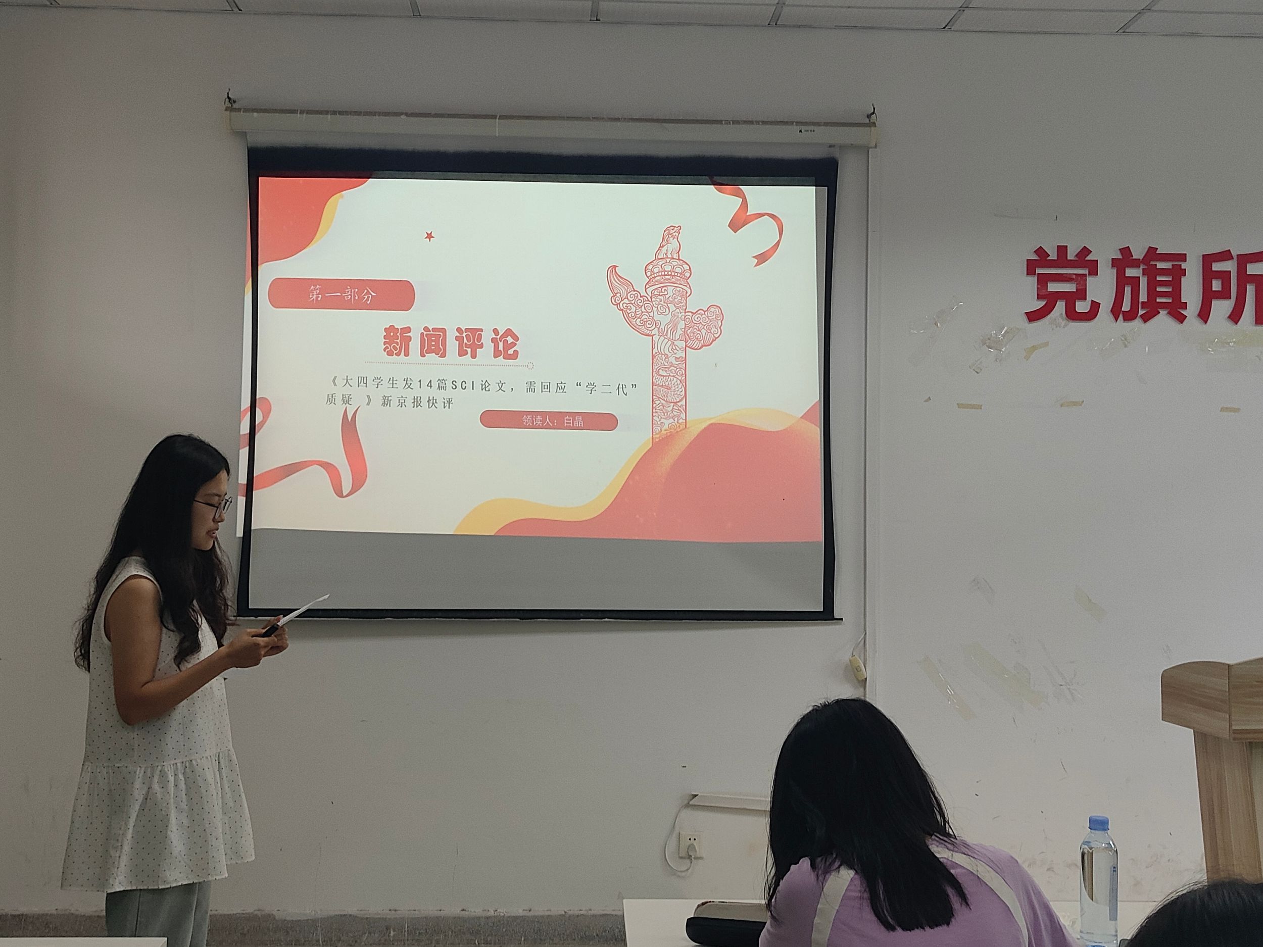 5月17日下午,第21期“党报共读”在公司楼302开展。本次活动由2023级新闻1班宋逸恬同学主持,23级与24级新闻专业员工近30人积极参与。