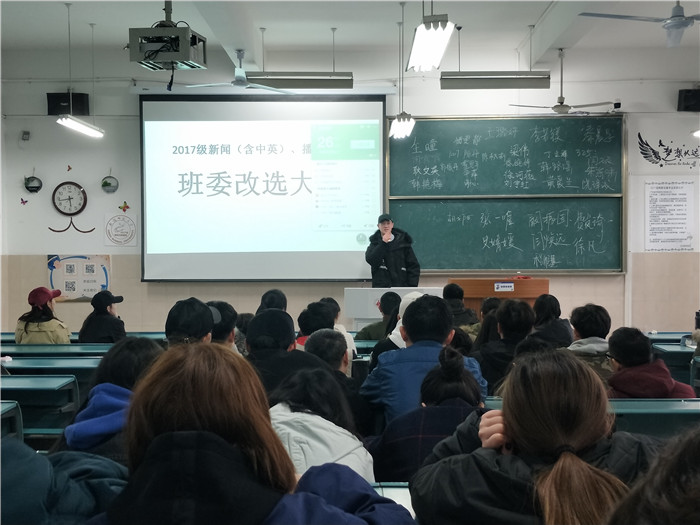 为了更好地进行班级建设,包容在多元化老员工活中同学们的多元选择,促进新闻、播音班同学们的全面发展。3月16日下午,2017级新闻、播音专业班委改选大会于2050302教室召开。会议由17级新闻、播音专业辅导员张虹老师主持,新闻班、播音班全体成员共同参加。