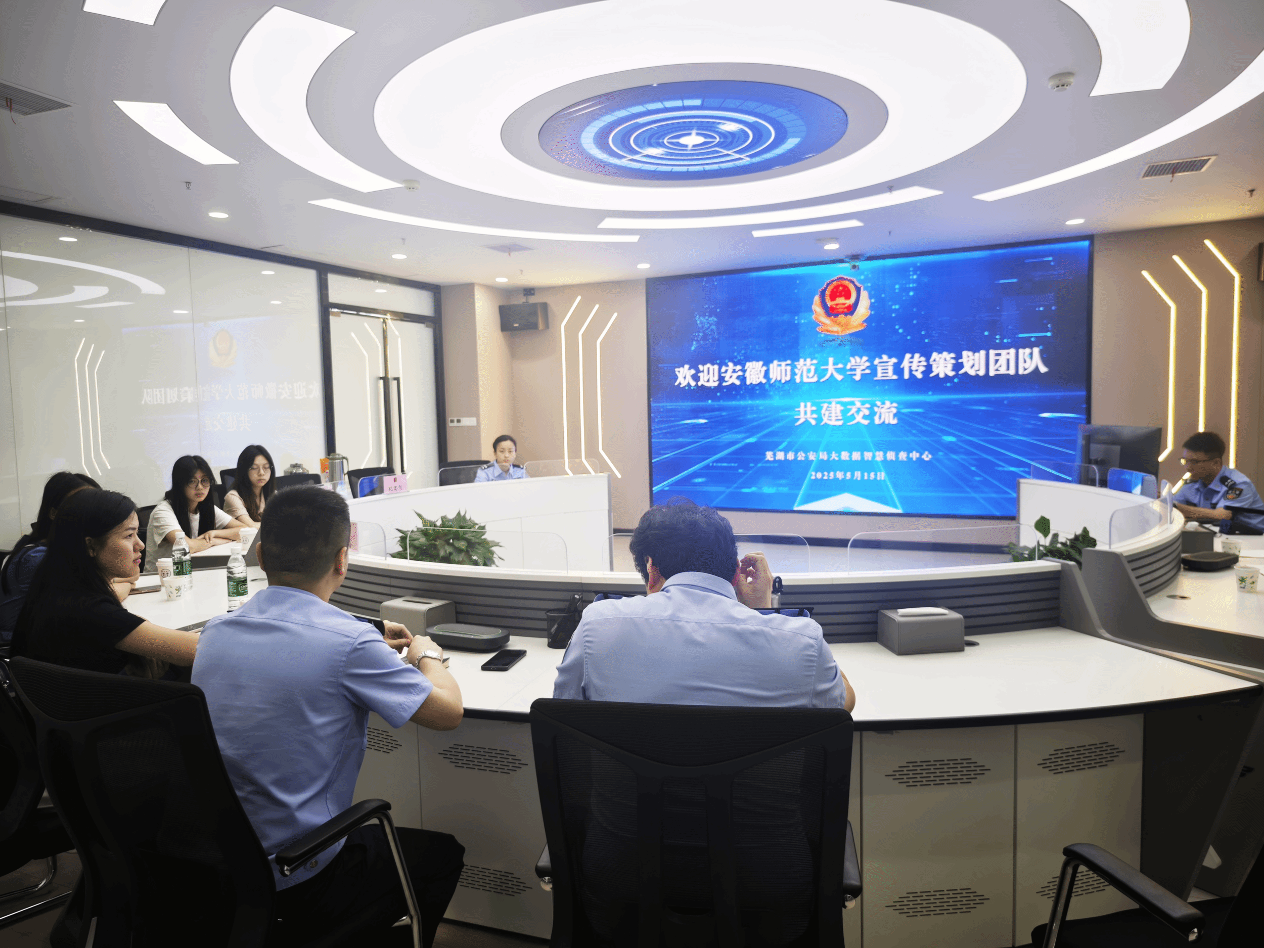 5月15日,2023级播音与主持艺术专业吴瑞睿、姜怡文、纪思彤、郭伊玲等4名同学邀赴芜湖市公安局,与公安民警一起座谈交流“平安芜湖”短视频创作活动。