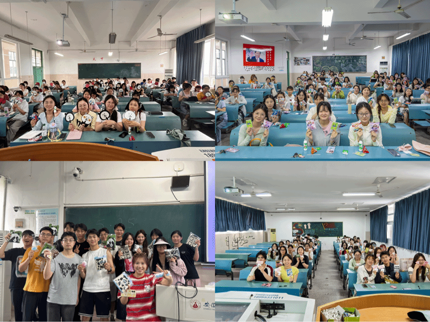 各专业班级紧扣主题设计特色活动:新闻1班与2班联合举办知识问答、情景模拟表演及“心灵对话”分享会,现场发放定制知识手册与礼品;网络与新媒体班通过PPT科普心理知识,设置“压力释放区”(击打解压球、涂鸦)与“心灵树洞区”(匿名投递烦恼便签);广告班开展“心灵之扇”创意活动,同学们在扇面书写心理健康感悟与祝福,并围绕“积极心态养成”开展主题班会;播音与主持艺术班在校园绿荫下发放遮阳帽、捏捏玩具等减压礼物,组织心理健康知识抢答与团队协作游戏。