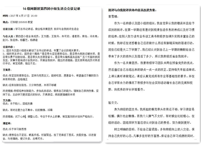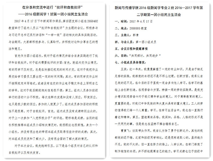 4月17日到4月19日,16新闻、网新团支部12个团小组陆续组织开展“学习总书记讲话 做合格共青团员”专题组织生活会,进行了批评和自我批评。会议由各团小组组长主持。