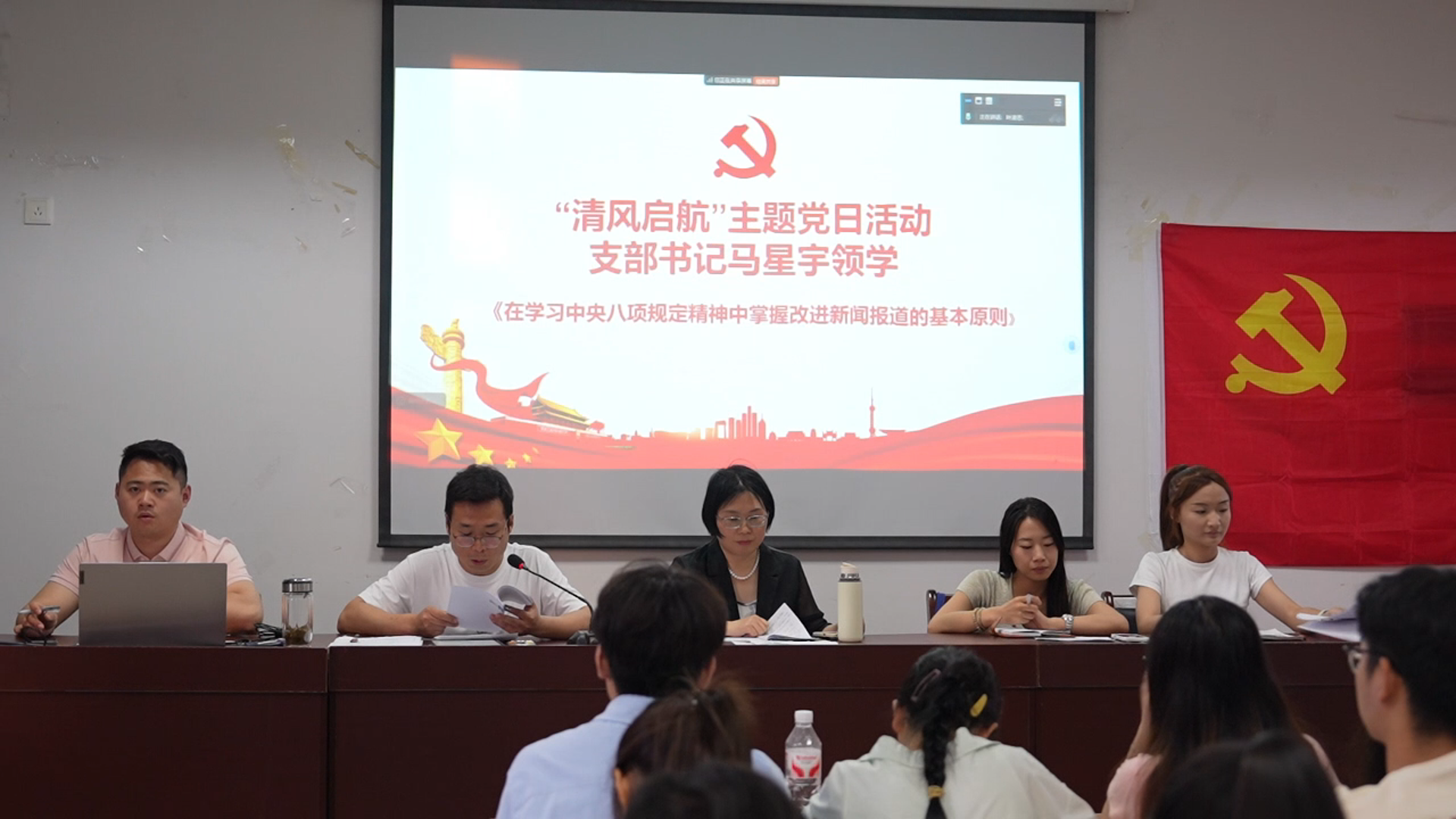 6月4日晚,新闻与播音主持本科生党支部在公司四楼会议室开展深入贯彻中央八项规定精神学习教育主题党课。联系支部的公司党委副书记、执行经理马梅和党支部书记马星宇分别为支部成员讲课。