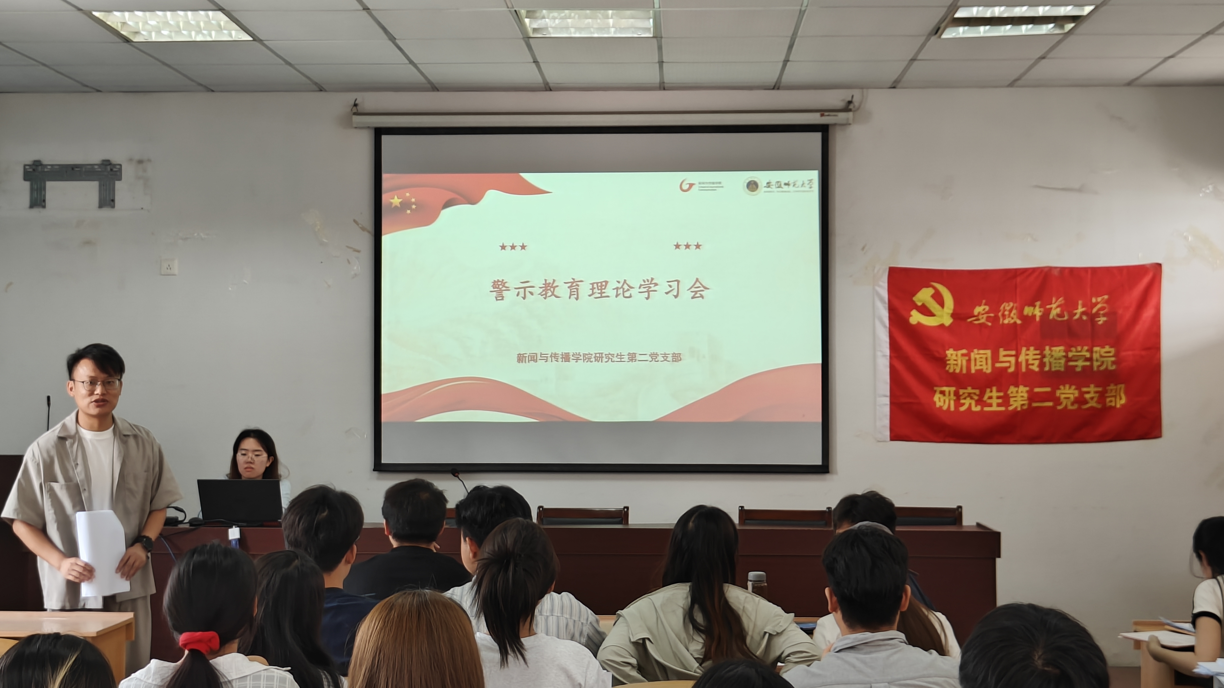 接下来,在支部书记张伟老师的主持下,研究生第二党支部召开了警示教育理论学习会。会议伊始,张伟老师通报了近期发生的违规吃喝等违纪违法典型案例,并结合《中国共产党纪律处分条例》相关条款进行深入解读。现场党员纷纷表示,案例中反面案例发人深省,深刻警示“纪律无小事,底线不可越”。随后,张伟老师进一步强调了深入贯彻中央八项规定精神学习教育的目的、意义与核心,并带领全体党员重温中央八项规定精神,重点围绕“改进调查研究”“精简会议活动”“厉行勤俭节约”等要求,结合员工党员实际,细化提出“学术研究严禁形式主义”“员工活动杜绝铺张浪费”“党员发展严守程序规范”等具体要求。