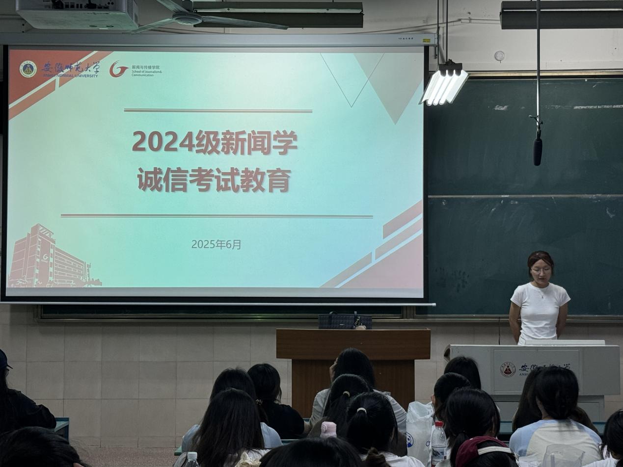 为强化员工诚信意识,严肃考风考纪,营造公平公正的考试环境,6月17日晚,24级新闻学专业在行知楼2050302教室开展期末诚信考试主题班会,班会由辅导员郭锦怡主持。