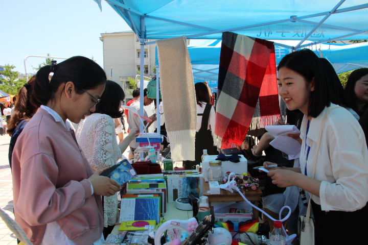 各具风采的摊位以他们独特的物品和方式吸引着人群。美术公司展示出精美的画作并协同孤独者协会举办“彩虹行动”,通过售卖自闭症孩童亲手做的蜡烛与香皂来为他们筹集善款;法公司的摊位被层层的书刊包围,体育公司的摊位放眼望去全是锻炼器材;文公司更是抱起吉他拿起话筒,用歌声展示风采。同时,校员工会成员随机邀请购买者填写评分表,从物品质量、物品价位、服务态度、整洁程度、购买体验五个方面对各公司摊位进行评估,从而选出最终的“文明摊位”。另外,公司安保人员也随时在岗,保障活动安全进行。