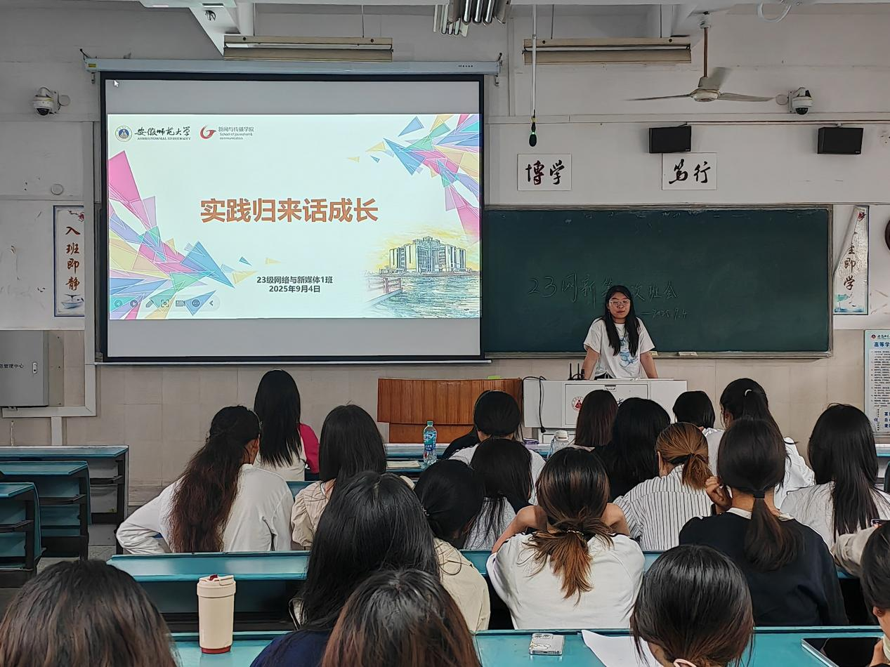 9月4日下午,2023级网络与新媒体专业在行知楼2030402教室召开实践归来话成长主题班会。本次班会由班长刘怡辰主持,2023级网络与新媒体专业全体同学参加。